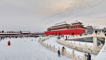 Музей Гугун в Пекине, известный как Запретный город, после снегопада превратился в исторический свиток, окутанный белым покрывалом.