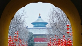 В столице выпал весенний снег, после снегопада преобразился Храм Неба, он напоминает удивительную картину тушью.